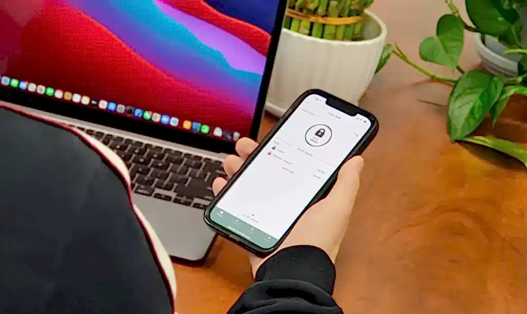 Akıllı Kasa Kilidimiz, doğrudan akıllı telefonunuzdan uzaktan kontrol ve yönetim sağlar. SECURAM Guard uygulamamızla eşleştirildikten sonra kilit her yerden kontrol edilebilir.
